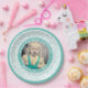 70 Your Photo Random Number Pattern Teal/White Paper Plate