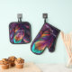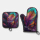 70s 60s Psychedelic Feathers Oven Mitt & Pot Holder Set