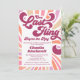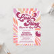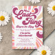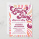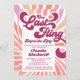 Celebrate her last fling in retro style with gorgeous 70s calligraphy in this bachelorette party invitation. The dynamic, bubble-font typography and retro artwork give this design a wild, disco vibe. Perfect for your retro bachelorette bash. Order your printed invitations or download your digital invitations now for a day they'll never forget!