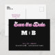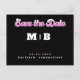 70's Pink and Black Monogram Save the Date. Wedding. First and Last Names. Fun. Postcard.