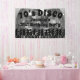 A fun snazzy 70's Disco themed birthday party banner in black and silver. People dancing with a cool silver glitter ball background and 60's / 70's / 80's text. All text can be personalised for example "birthday party", "happy birthday", name and age etc.