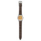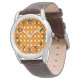 This men's watch has a 1970s design of solid yellow diamonds inside brown diamond outlines on a field of orange.