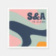 1970s vintage retro groovy waves personalised wedding monogram paper napkins in groovy bold typography and pastel colours including; pink and blue. This product is easily editable. If you need help with the customisation of this product or you need more matching products for this collection kindly message me via Zazzle.