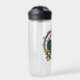 The bottle looks even better in real life. The ice cubes I put in lasts all day! I have my bottle with me all the time. It's summer and having something cold to drink feels amazing. With this bottle I always have something super cold. I have only tried the hot drink once and it lasted a long time as well. The color blue is a navy blue and the white printed on it is vibrant. It printed perfectly. I love my personalized smile water bottle.