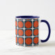 This is a retro pattern I designed after the 70s era. It has orange circles insides blue rounded squares.