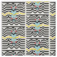 A skateboard with a retro, seventies, trippy pattern.