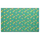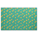 Fabric inspired from the 60s-70s with a orange background and stylistic blue cubes in different sizes and shapes.