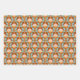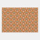 This gift wrap design features three retro prints. Colours include orange, brown, pink and blue.