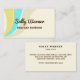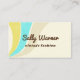 70s vintage business card featuring three colourful waves with a retro, bleached distressed design. 1970s colour scheme in yellow, blue and beige.