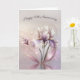 Mauve and white iris flowers with intricate details are outlined in gold and adorned with dew drops for 70th wedding anniversary.