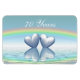 Magnet with my pastel design of two platinum hearts floating on the water under a rainbow. Customisable text says "70 Years".