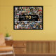 70th Birthday 92 Photos Black Gold Cheers To Years Poster. Create a 70th birthday photo memory display printed on a poster print utilising this easy-to-upload photo collage template with 92 pictures in various sizes to accommodate pictures of her or him through the years for a fun birthday sign or party decoration and commemorative keepsake. The design features the title CHEERS TO 70 YEARS with gold foil balloon numbers and your custom text (the sample says HAPPY BIRTHDAY NAME) in your choice of text of font styles and colours as well as background colour (shown in black). OPTIONS: The sample is shown in a 36x29" size on Value Paper (Matte); other standard and custom print sizes, paper quality and framing, Instant Digital Download file for printing locally or transferring the design to a foam board, banner, canvas or other product options are available on the ordering page. RESIZING TIP: Choose Custom Size for even borders by changing the height and width proportionately AFTER clicking the UNLOCK icon (looks like a chain link). ASSISTANCE: For help with design modification or personalisation, colour change, resizing or transferring the design, contact the designer BEFORE ORDERING via the Zazzle Chat MESSAGE tab or email makeitaboutyoustore@gmail.com.