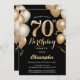 70th Birthday Black and Gold Balloons Confetti Invitation