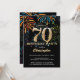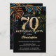 70th Birthday Black and Gold Rainbow Fireworks Invitation