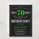 70th Birthday Invitation Black and Green Typography. Chalkboard. Black and White Background. Adult Birthday. Male Men or Women Birthday. Kids Boy or Girl Lady Teen Teenage Bday Invite. 13th 15th 16th 18th 20th 21st 30th 40th 50th 60th 70th 80th 90th 100th. Any Age. For further customisation, please click the "Customise it" button and use our design tool to modify this template.