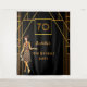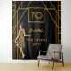 Elegant faux gold and glam welcome banner, wall decoration or photo backdrop for a 70th birthday party! Art deco style faux gold and black for a glamourous celebration. Decorated with a 1920's style flapper girl and art deco style pattern. Templates for the age 70 and a name.