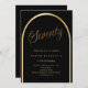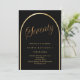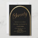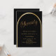 An elegant 70th birthday invitation. A black background with a golden arch on the front.