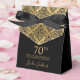 This elegant 70th Birthday Black Gold Damask Thank You favour box with shimmering gold faux foil, the birthday girl's name in a trendy script font, and tied with an elegant black bow would be perfect for your event. It would be great for a candy station, on a thank you gift table, or at each place setting with a favour. Be sure you order enough for all your guests.