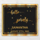 Elegant and modern for a 70th birthday party. Black backdrop and faux gold text written with a trendy hand-lettered style script: hello seventy. With golden dots as decor. Templates for name and date, golden letters. You can change the background colour to match your theme. Click customise and then "select a background colour" on your right.