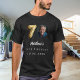 For a black, dark coloured t-shirt. White text. Personalise and add a photo, name, age, date. Faux gold looking 7-number.