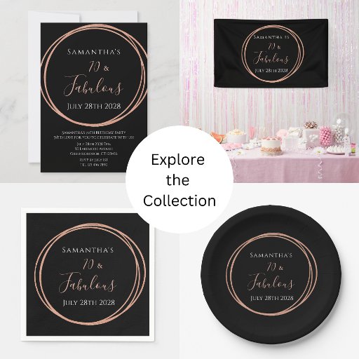 70 and Fabulous Birthday Party Black Rose GoldDesigned by Only The Moon