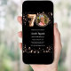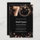 A modern, stylish photo invitation for a 70th birthday party. A classic black background, decorated with rose gold stars. Personalise and add your party details.