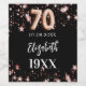 A classic black background decorated with rose gold stars. Personalise and add a date, name and year of birth. Age number written with a balloon style font.