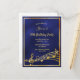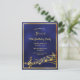On front: A trendy, modern 70th birthday party invitation card for men. A dark blue, navy blue background. The blue colour is uneven. With a faux gold frame and music notes, golden coloured letters. Templates for your party information. Back: white background.