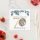 70th Birthday Blue Gold Watercolor Floral Photo Napkins. Simple and modern birthday party invitation with blue watercolor florals and gold accents. This design also features a custom photo of the birthday person. Need help with this template? Contact the designer by clicking the 'Message' button below.