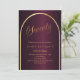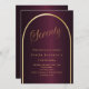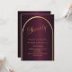 An elegant 70th birthday invitation. A burgundy background with a golden arch on the front.