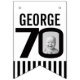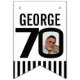 70th black on white add your own three photos birthday bunting flags. Personalise with your own honouring name and three photos in the 0 of 70. Uniquely design by www.mylittleeden.com
