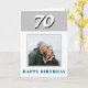 70th Birthday Custom Photo Personalized Card. Personalized 70th birthday greeting card for someone celebrating 70 years. This modern and simple design features the age, photo and Happy birthday text. Add your photo and message inside or erase it. You can also change the age.