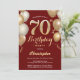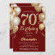 70th Birthday Dark Red and Gold Balloons Confetti Invitation