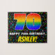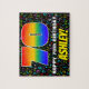 This exciting and vibrant birthday-themed jigsaw puzzle design features a large number “70” with a multicolored rainbow spectrum inspired gradient pattern, along with the message “HAPPY 70th BIRTHDAY,”, and a personalized recipient name. The background features a fun pattern of musical notes having various colors and sizes. A joyful, customized birthday puzzle like this might be used to celebrate somebody’s seventieth birthday. These might be more meaningful if that person is a musician, a composer, a singer, a songwriter, or likes listening to music. [~Z0000608]