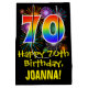 This colourful, exciting, and fun birthday giftbag design features a large number "70" with a rainbow spectrum gradient style pattern, along with the message "Happy 70th Birthday,", and a personalised recipient name. It also has a colourful background pattern inspired by the look of bursting celebratory fireworks. A birthday themed gift bag like this might be used when giving a gift or present in celebration of somebody’s 70th birthday. [~Z0000509]