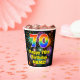 This cheerful and joyful birthday themed paper cup design features a large number “70” having a rainbow spectrum gradient inspired pattern. It also features the message “Happy 70th Birthday,”, and a customisable name. The background features a colourful pattern inspired by the appearance of bursting celebratory fireworks. Vibrant, colourful paper cups like this might be fun to have at a birthday party being held to celebrate somebody’s 70th birthday. [~Z0000539]
