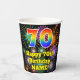 70th Birthday: Fun Fireworks Pattern + Rainbow 70 Paper Cups