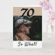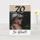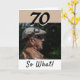 70th birthday custom greeting card for someone celebrating 70 years. It comes with a funny and motivational quote 70 So What! and is perfect for a person with a sense of humor. The card is in the beige and black colors. Insert your photo into the template and change the year number. You can leave, change or erase the message inside the card.