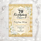 70th Birthday Invitation. Elegant floral design in gold and white. Features faux glitter gold stripes, white roses stylish script font and confetti. Perfect for a glam birthday party.