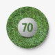 Number 70 on white golf ball on green grass for golfer's birthday party.