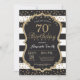 70th Birthday Invitation for women or man. Black and Gold Birthday Party Invite. Gold Glitter Confetti. Black and White Stripes. Printable Digital. For further customisation, please click the "Customise it" button and use our design tool to modify this template.