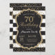 70th Birthday Invitation. Black and Gold Glitter Invitation