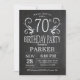 70th Birthday Invitation Chalkboard Floral Background. 13th 15th 16th 18th 20th 21st 30th 40th 50th 60th 70th 80th 90th 100th, Any age. Adult Birthday. Woman or Man Male Birthday Party. For further customisation, please click the "Customise it" button and use our design tool to modify this template.