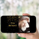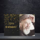 Black background with golden confetti. With the text: 70th Birthday! on front. Template for your photo. A birthday party invitation for men.