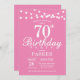 70th Birthday Invitation with String Lights. Pink Background. Women Female Lady Elegant Modern bday. 13th 15th 16th 18th 20th 21st 30th 40th 50th 60th 70th 80th 90th 100th, Any age. For further customisation, please click the "Customise it" button and use our design tool to modify this template.