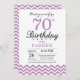 70th Birthday Invitation with Purple Chevron. Black and White. Adult Birthday. Man or Women Bday Invite. For further customisation, please click the "Customise it" button and use our design tool to modify this template.