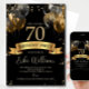 70th Birthday Invitation Template: Black & Gold Balloons (Digital Download)