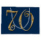 Celebrate your fathers, dads, sons, uncles, nephews, boyfriends or husbands birthday with this chic and trendy numeral seventy in gold set against a dark navy blue background