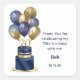 These modern 70th birthday party square thank you stickers featuring a 2-layer navy blue and gold cake with navy blue and gold balloons, the number 70 in gold, the guest of honour's name and the date of the party would be perfect for sticking on party favours after celebrating your husband, brother, dad, uncle, grandfather, friend. They are traditional and classic while being fresh, modern and contemporary.