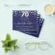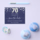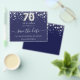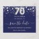A girly and trendy Save the Date for a 70th birthday party. A navy blue coloured background. Decorated with faux silver stars. The text: Save the Date is written with a large trendy hand lettered style script. Number 70 is written with a balloon style font.